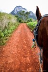 The malanga, mojito and cigar combo soothed as we were kept rapt with attention, watching the veguero carefully prepare another drink. He slowly smokes his cigar without ashing. A good cigar, he says, will keep it’s ash in tact up to 3cm before dropping. The whiter the ash, the higher the quality of tobacco in the roll. Another farmer comes in from the bright fields, stoking a fire and cooking up some more malanga. He mashes with a silver fork. The horses outside whinny with the approach of cattle. A roll of 25 cigars is offered, wrapped in palm leaves, a natural way to keep the humidity intact without plastics or metal. We buy a good supply, clink a glass one last time and remove ourselves from the relaxing confines of the casa and into the afternoon light. Shadows have changed on the mogotes since we went inside, vultures circle ahead and our horses are anxious to saunter. It’s time to ride again.
