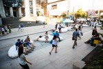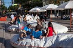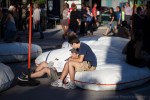 From the get-go, it seems the public took to these forms immediately, like they were always meant to be there. I took some time to observe and photograph the different ways people interacted – children jumping off them and sliding down them, adults taking a rest on the pillows, teens texting and sketching, tourists snapping pics. All the while a DJ spins (and led off with a track from Demdike Stare – kudos!) and the formerly exclusive-to-motorists pavement became an outdoor lounge for a spell. Here’s to more of these public art projects that engage, inspire and enhance our city streets. Pop Rocks is on until September 3, so find some time to relax on a giant beanbag downtown.