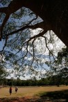 In these images, you can see the landscape of the Yucatán – very flat, dusty and hot yet shaded by the mighty Ceiba tree – the Tree of Life – a common site at Mayan archaeological sites. And this is along the Puuc route, the hilliest area around. Little elevation gained here, yet the smallest of hills in a clearing allows a vista stretching across the land, with pyramids and temples visible in the trees if you look carefully. Labná is a small site worth a visit for the arch alone, and visitors will be rewarded with a deeper look at the natural state of these ruins after the jungle has been cleared.