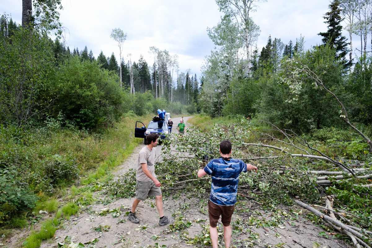 Clearing the road from fallen trees in Wells Gray Park.