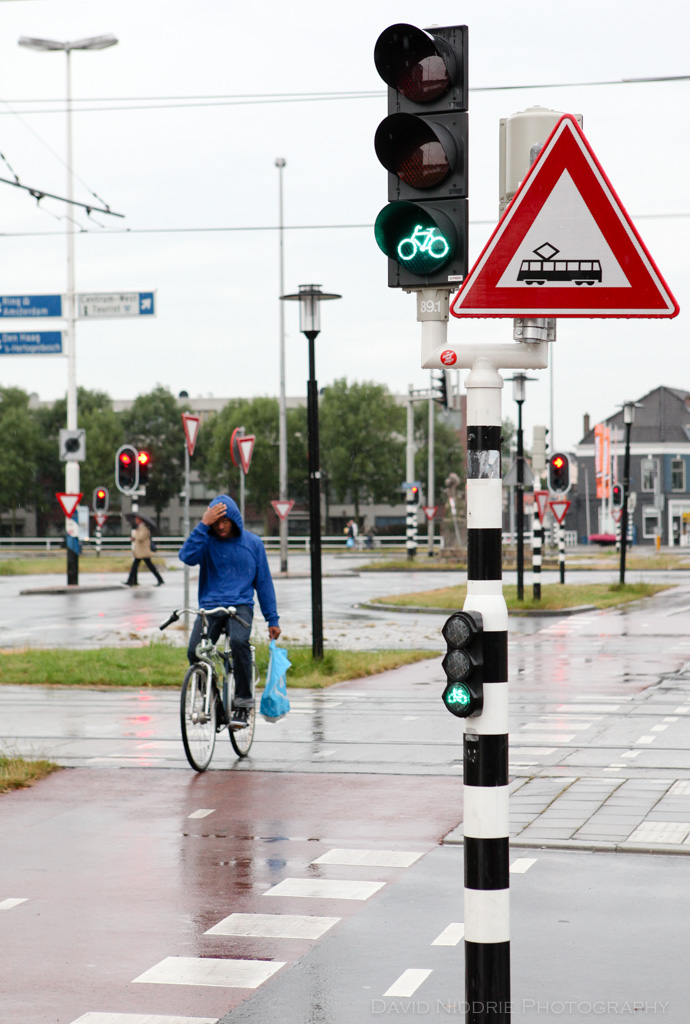 Cycling in the rain in Utrecht, Netherlands.