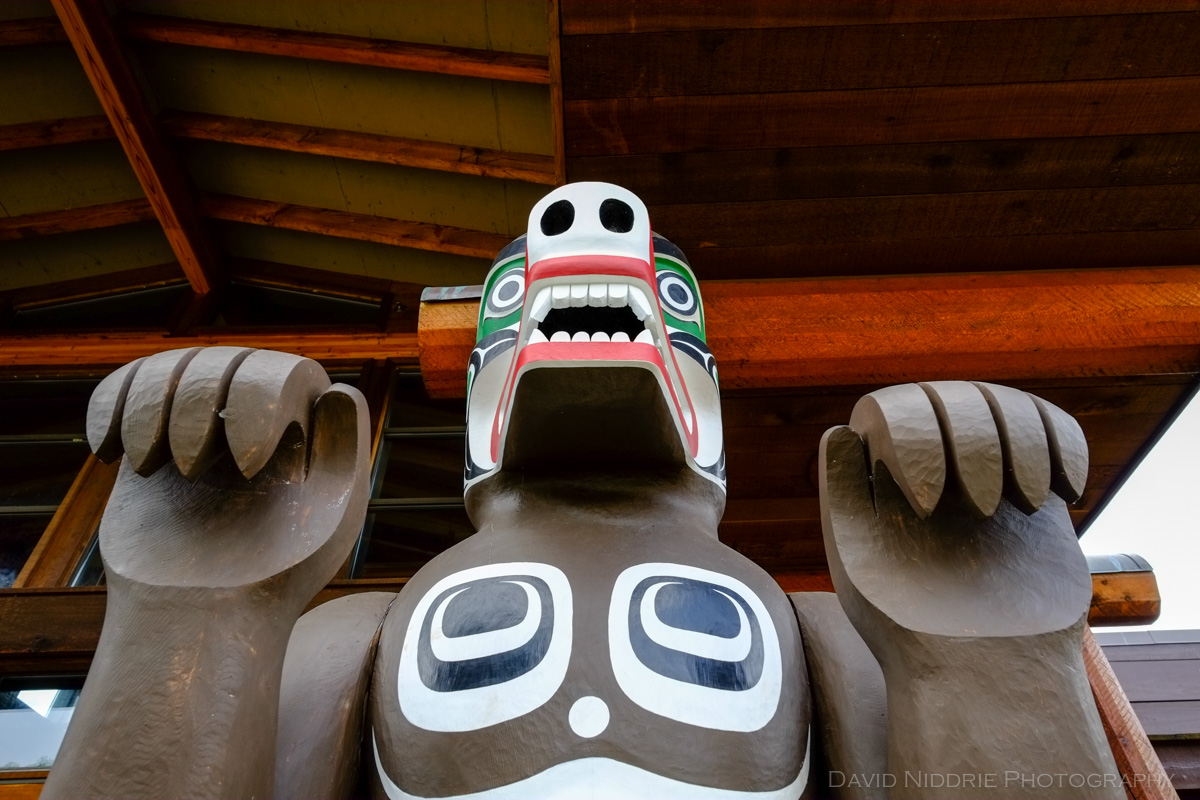 A Totem welcomes you to Alert Bay, Cormorant Island, BC.