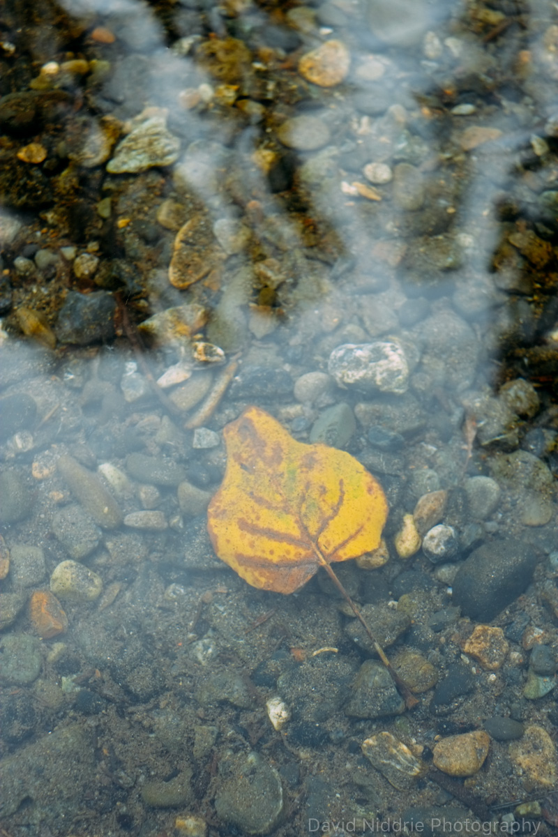 Lone yellow leaf underwater on the Skagit River