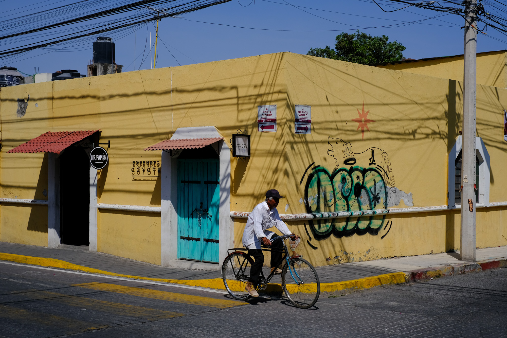 We walked from our apartment down through the low-lying buildings, spotting the remnants of carnivals and Semana Santa celebrations along the way. Here’s a tiled church with a midway ride out front. Around the corner, tortillerias pumping out the goods, elderly folk on bikes slowly rolling for errands. A very locals-only kind of place, we were feeling off the tourist path here and discovering some deliciously tiny cafes and restaurants along the way. It was hot, dusty and very windy — all things that would ramp up as we walked to the pyramid.