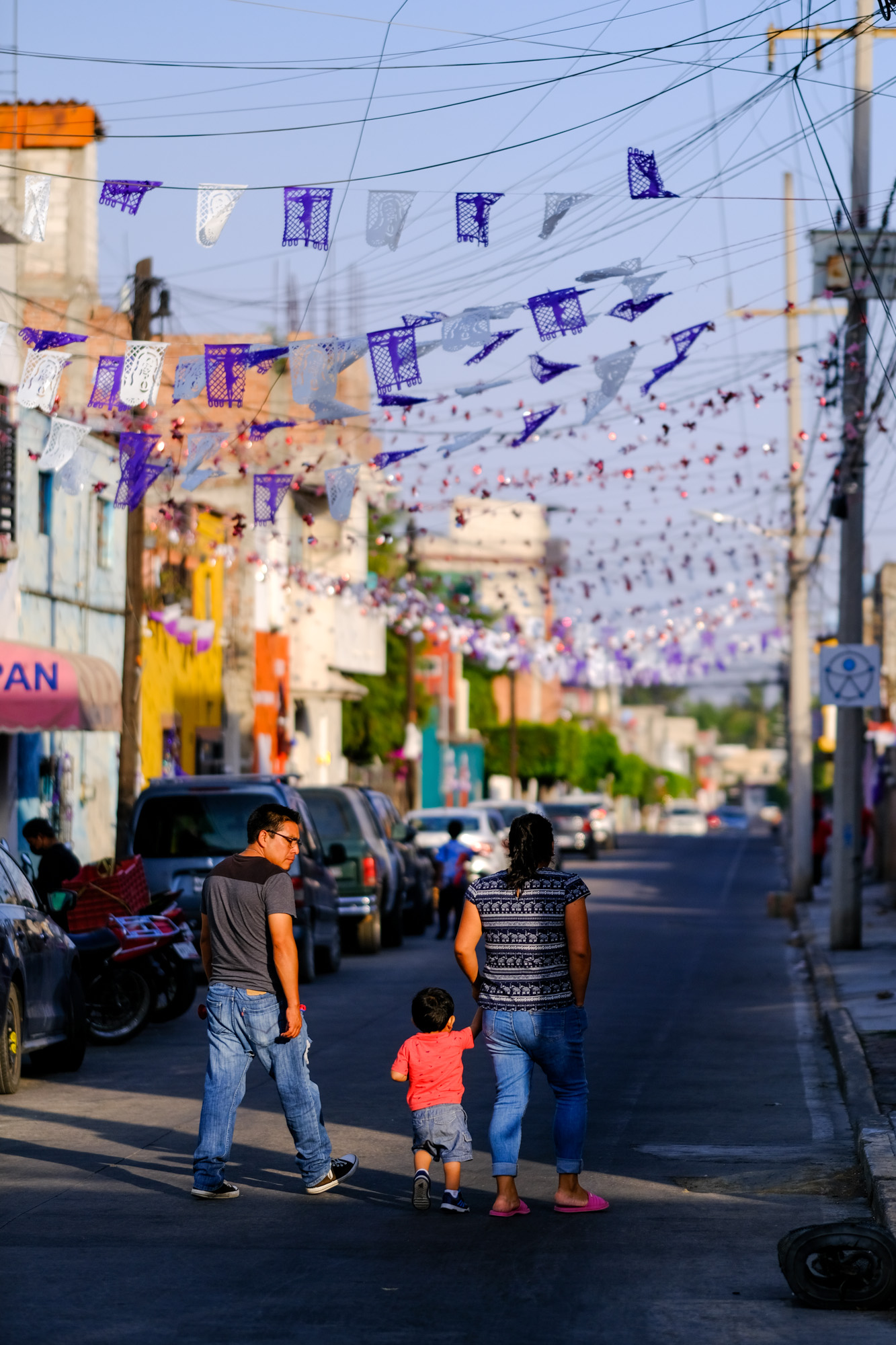 Both reasons for visiting in one scene: being on top of this ancient structure, gazing at the Smoking Mountain. Done! But, Cholula had an irresistible draw – the calm streets and small town feel meant we could saunter and photograph with ease. As the day was drawn out, the shadows and light on the brightly painted buildings made our walk home a slow one, with scene after scene presenting itself to our hungry eyes. Alas, our hungrier bellies sent us to the Oxxo for a dinner ingredient, with a local youth informing us ‘you know, Mexican people don’t buy groceries here at Oxxo’. Haha, thanks kiddo! It was a desperate move that got us the last avocado, a sack of refried beans and tortillas – enough to stave off our hunger before the best breakfast (so far) the following morning. Back at the apartment, the volcanic sunset was the final touch on a visually stunning day.